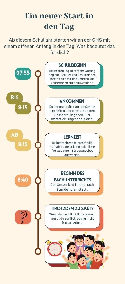 Ab morgen, dem 28.8.2025, führen wir ein neues Konzept an unserer Schule ein: den offenen Anfang.
